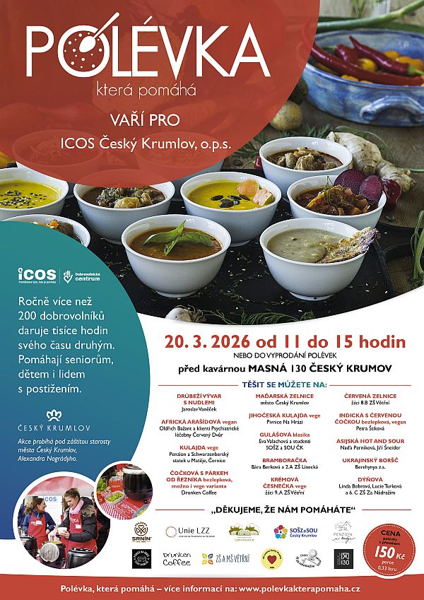 Nemůžete přijít osobně na akci a přesto chcete ICOS podpořit? Pak je tu virtuální polévka. Výtěžek z jejího prodeje přidáme k penězům z polévek na akci.